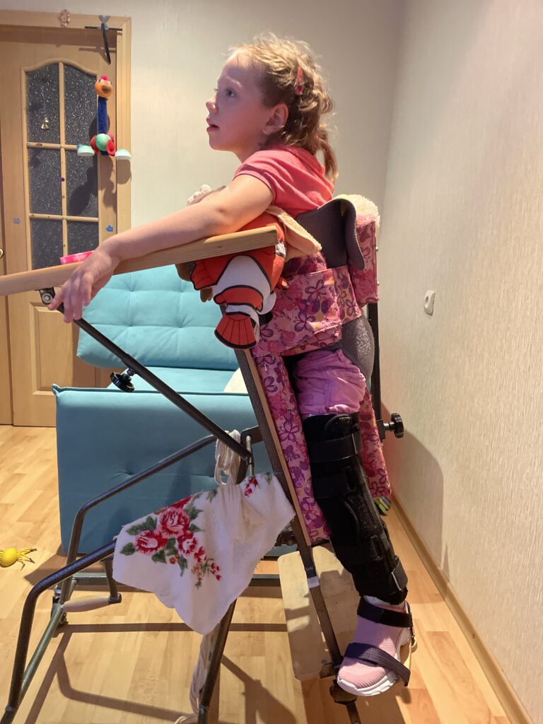 «Вертикализатор со столиком даст возможность Милане зафиксировать ножки в нужном положении. Функции вертикализатора позволят также регулировать положение бедер и, следовательно, предотвратить дисплазию у ребенка. К тому же возможно изменять угол вертикализации от 90 до — 150 градусов, что поможет растягивать мышцы и сохранить суставы Миланы в правильном положении. Также дочка сможет смотреть мультфильмы и любимые детские передачи в вертикализаторе.